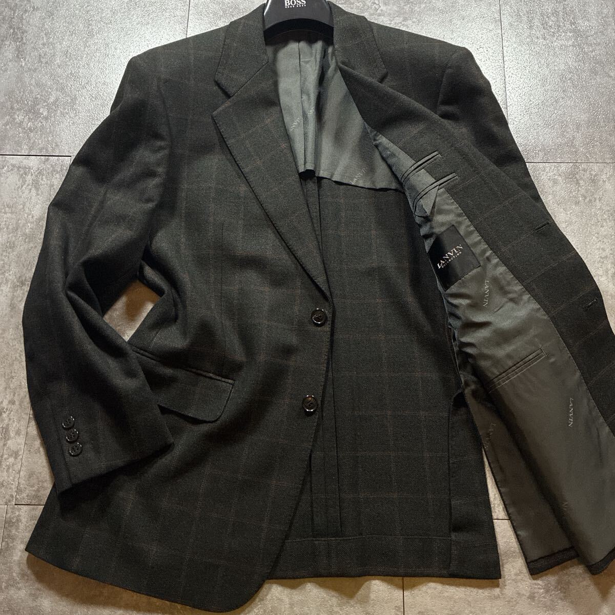 > 【極美品・L相当】LANVIN COLLECTION ランバンコレクション カシミヤ シルク テーラードジャケット チャコールグレー メンズ 秋冬 チェック