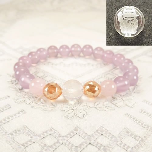 > 【SJ】新品 開運!招き猫 パワーストーン ブレスレット ジュエリー パープルカルセドニー仕立て ALA715