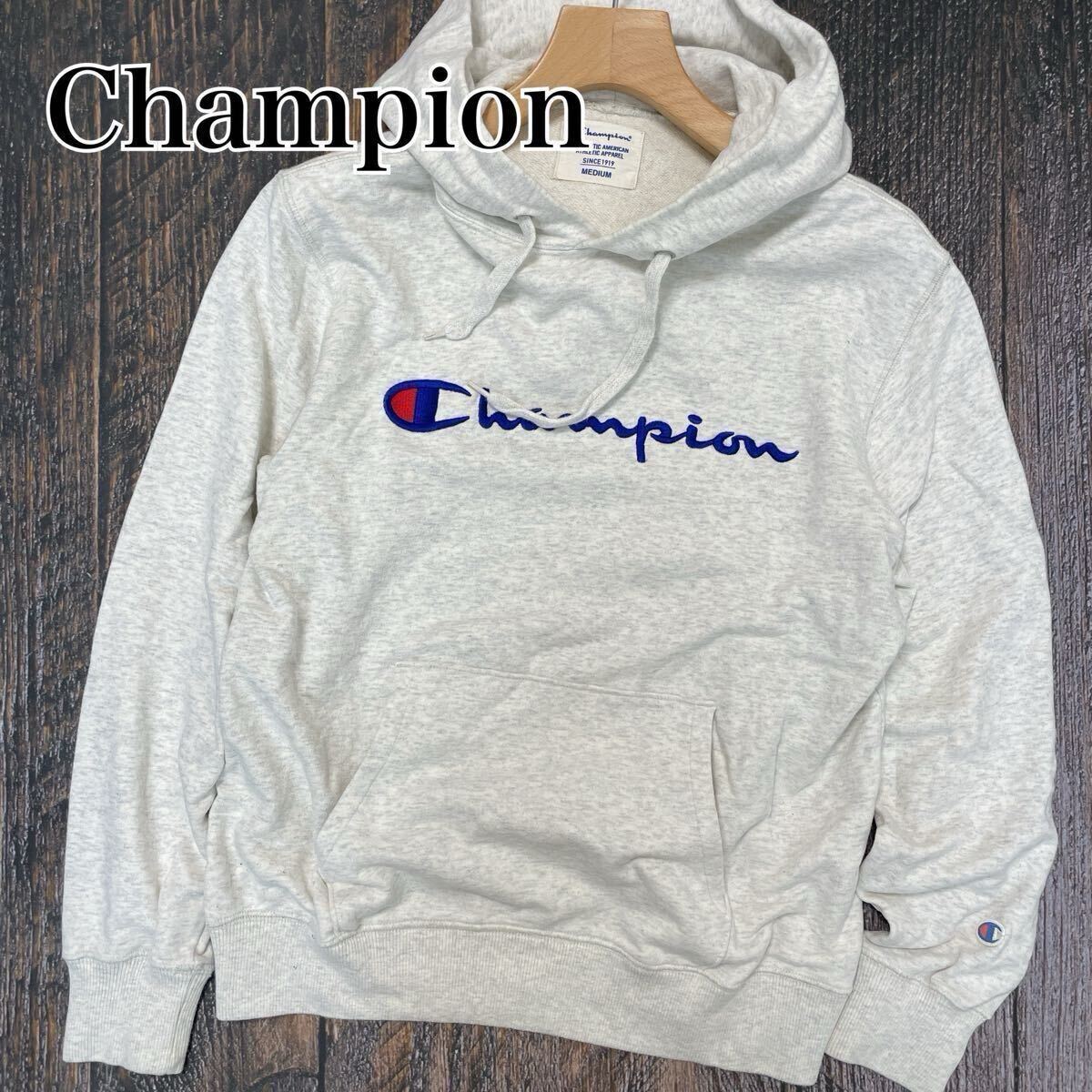 > チャンピオン Champion 長袖 スウェット パーカー Mサイズ M グレー トップス プルオーバーパーカー フーディー ロゴ ポケット トレーナー