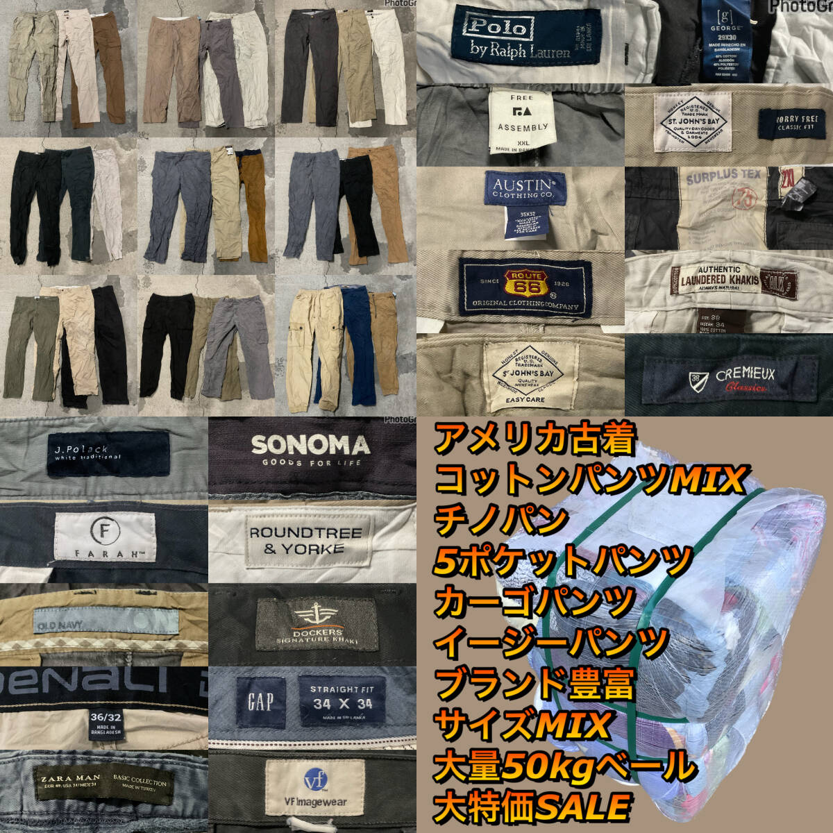 > 【T1504】★最安値★ アメリカ古着 古着卸コットンパンツMIX大量50kgベール目玉商品 ブランド豊富 大量仕入れ ボトムス MEN'SサイズMIX