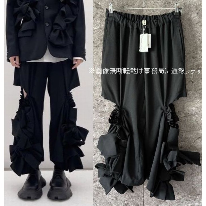 - 新品 2024AW COMME des GARCONS コムデギャルソン☆フリル リボン サイド ホール デザイン ワイド パンツ/サイズS ブラック 定価86900円
