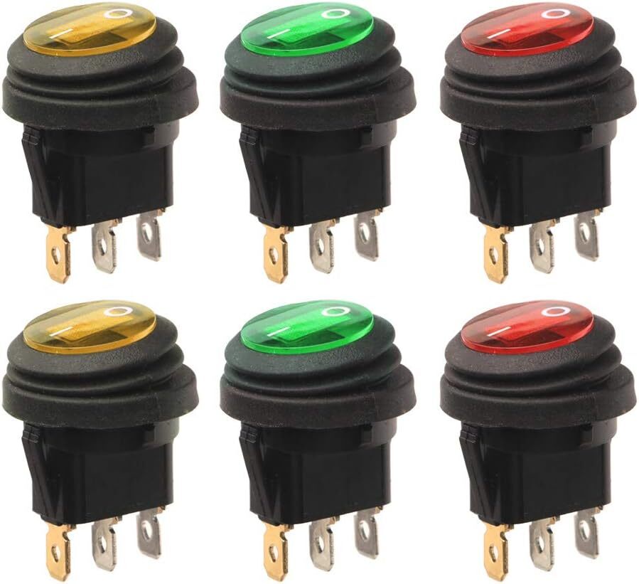 - Kiligen 6個 12V-24VDC / 20A防水丸型ロッカートグルスイッチ、LEDインジケータ付き、3ピンSPST ON-