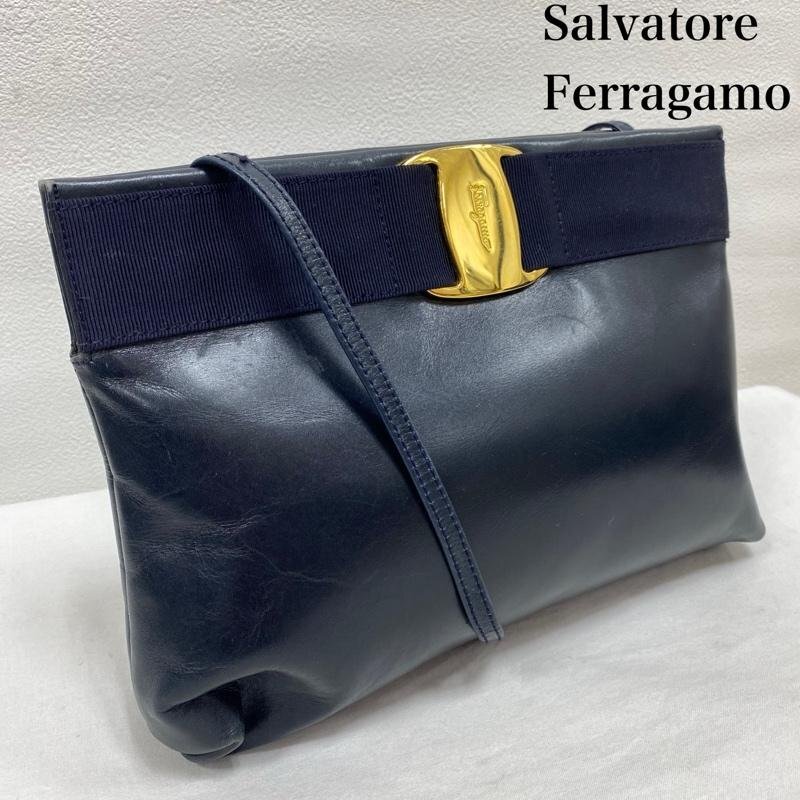 - サルヴァトーレフェラガモ オールド ヴィンテージ ヴァラ レザー クラッチバッグ ショルダーバッグ 斜め掛け ゴールド金具 -
