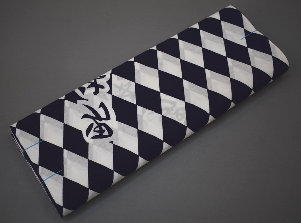 - A39-16【凛々】即決 新古品 本染 ゆかた反物 白 紺 菱 男大会 未仕立て品