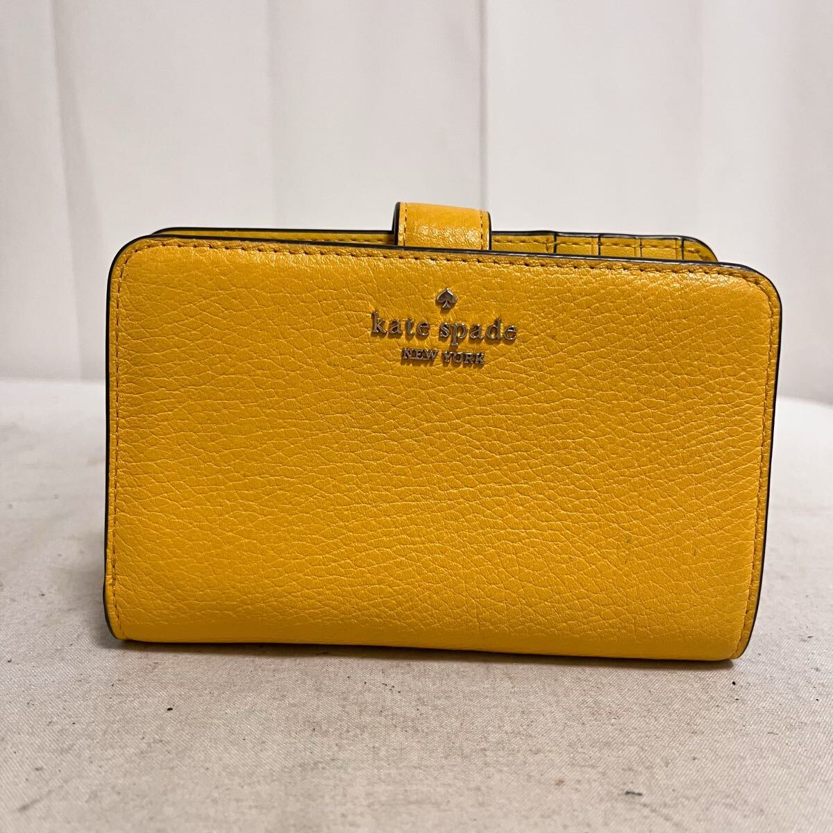 - 和851★ kate spade NEWYORK ケイトスペード ニューヨーク レザー 折り財布 ウォレット イエロー レディース