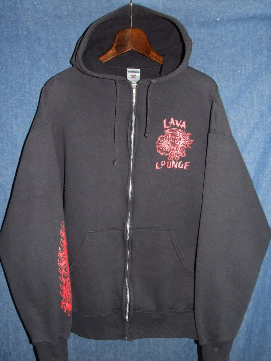 > vintage!LAVA LOUNGE*JERZEESフルジップパーカ*ブラック×レッド*size L*IDEALジップ*OLDヴィンテージスウェットフーディー*surfハワイアン