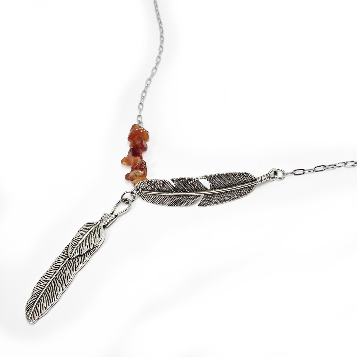 - 男女兼用 フェザーチャーム ロングネックレス カーネリアン 約75cm NGF04