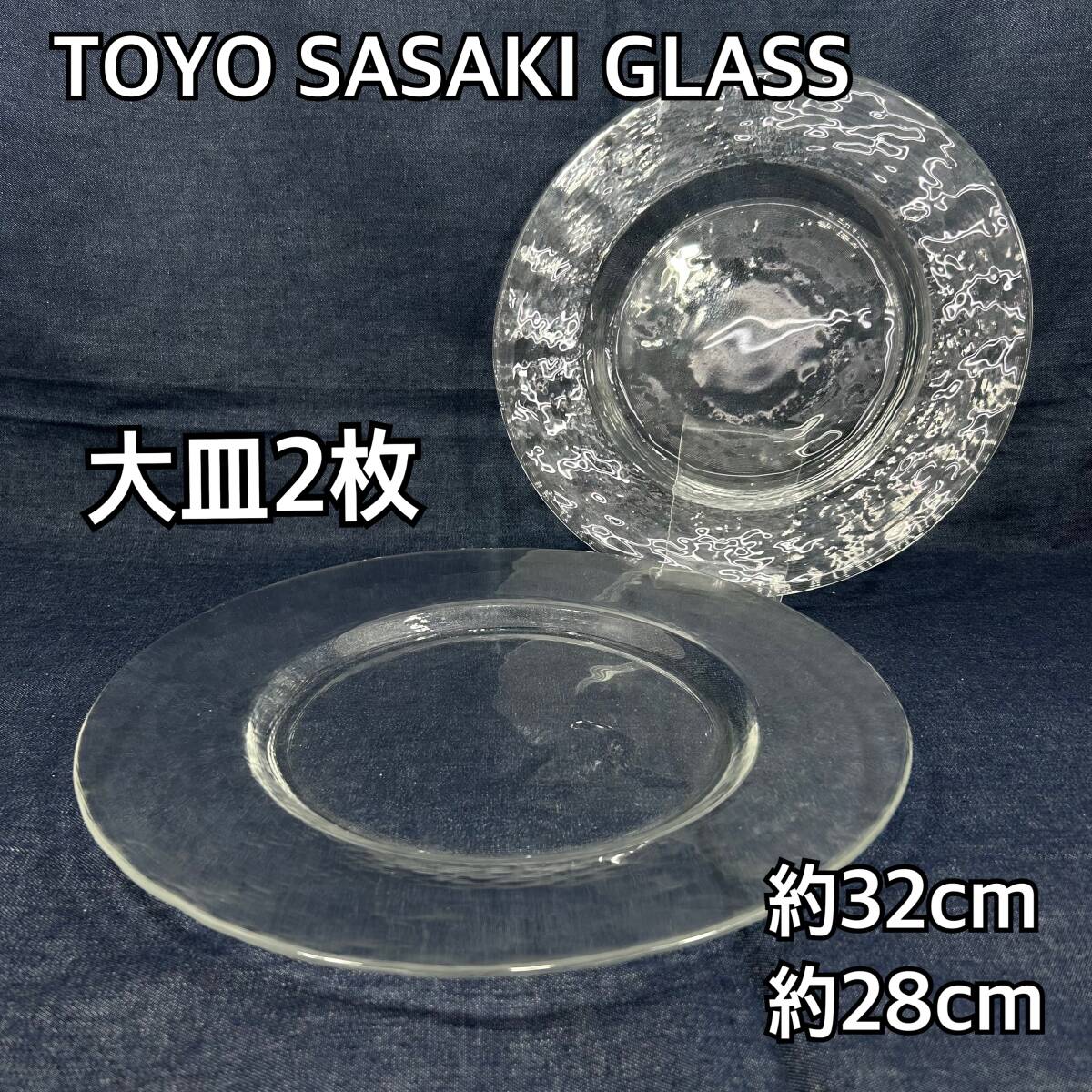 - 【未使用】東洋佐々木ガラス ガラスプレート 大皿 2枚セット クリア ガラス 日本製 大皿 取り皿 食器 TOYO SASAKI GLASS E302