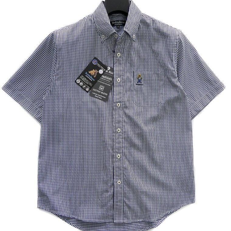 - 新品 テディベア 25年春夏 ギンガムチェック 半袖 シャツ M 紺 【TD252081_79_M】 Teddy Bear ロゴ 刺繍 ボタンダウン チェック メンズ
