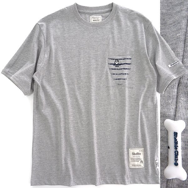 > 新品 シェルティークラブ ボーダー ポケット 半袖 Tシャツ LL 灰 紺 【SH1442086_97_LL】 Sheltie Club 春夏 メンズ カットソー 丸首