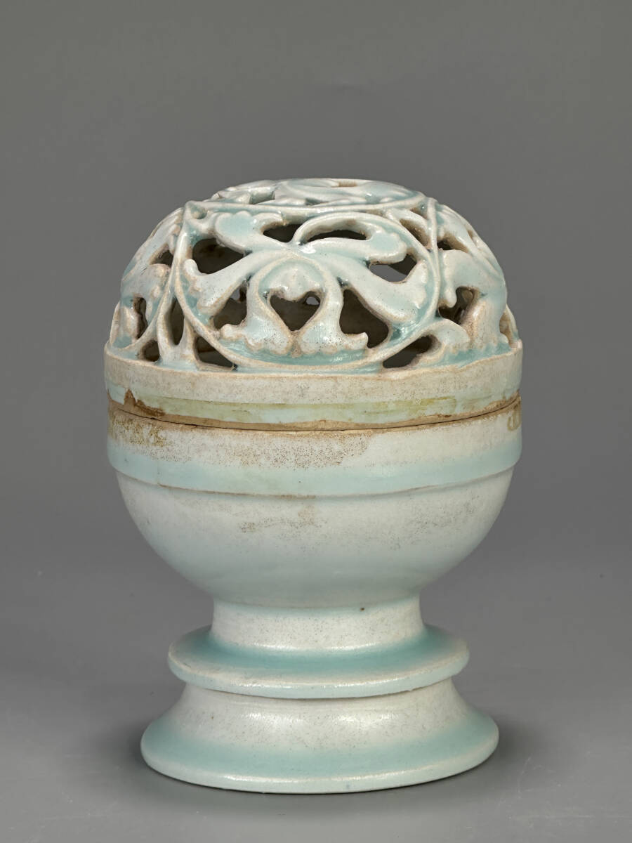 - US30-17 中国美術 宋時代 影青釉 湖田窯 透彫花文香炉 蓋物 時代物 唐物