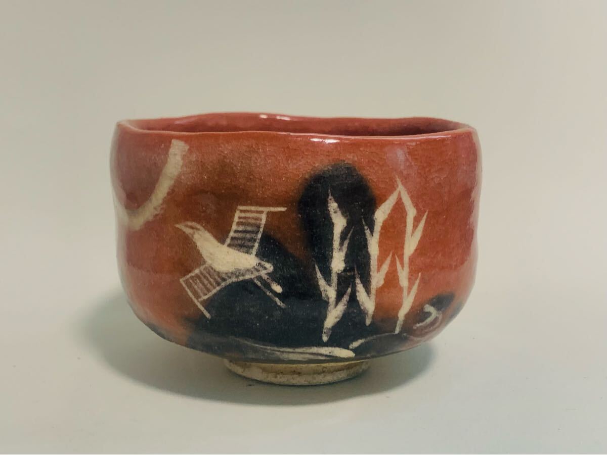 - 赤楽 佐々木松楽 作 松楽窯 京焼 赤楽茶碗 陶磁器 陶器 鳥 茶道具 茶器 茶碗 抹茶茶碗 楽焼 茶道 抹茶碗