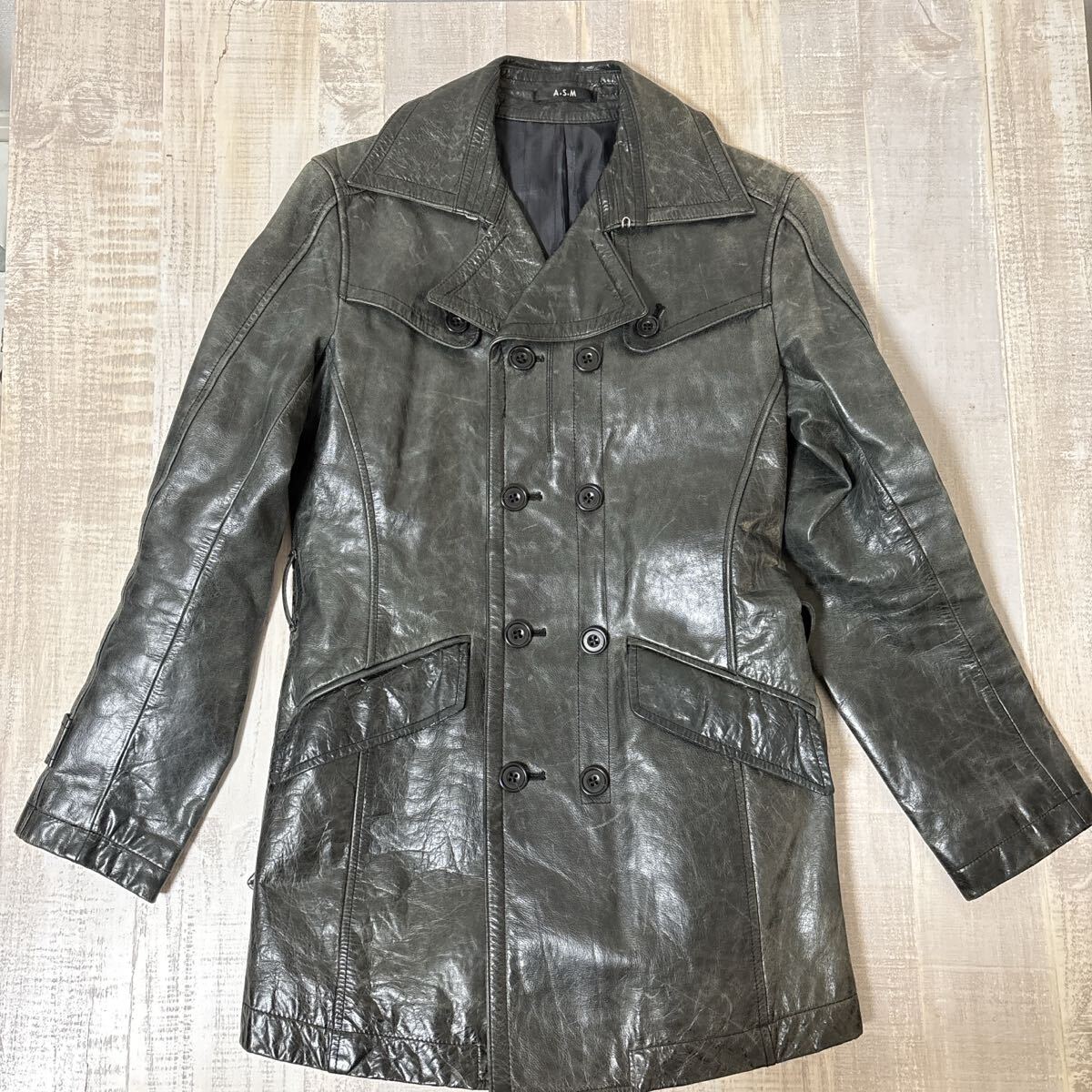 > 【水牛革 ベルト付】 A.S.M レザー トレンチ コート ジャケット ATELIER SAB MEN アトリエサブ メン ブラック 黒 メンズ ヴィンテージ
