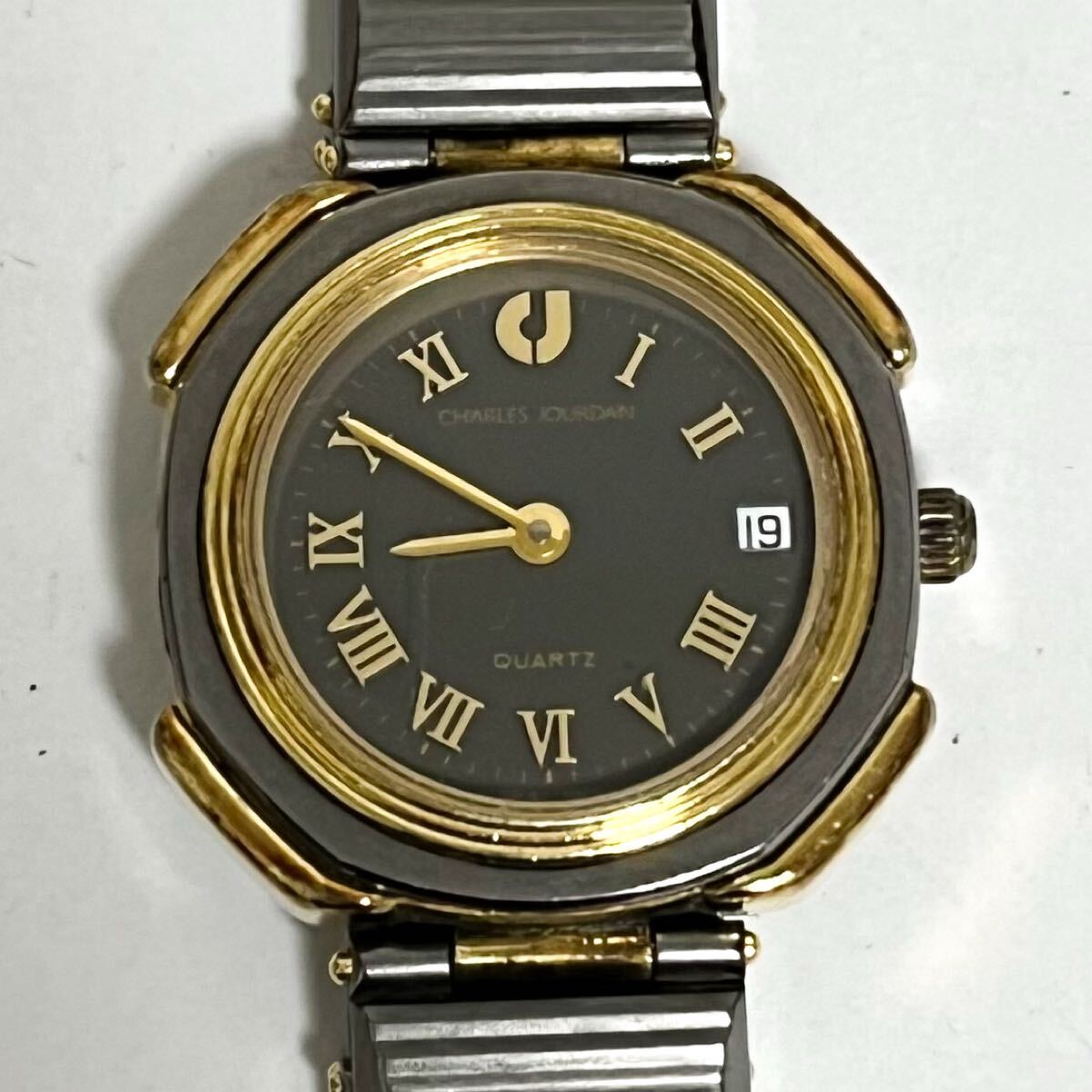 - 和851★ CHARLES JOURDAN シャルルジョルダン クォーツ 腕時計 ウォッチ 2針 日付 232 0852 グレー ゴールド メタルバンド レディース