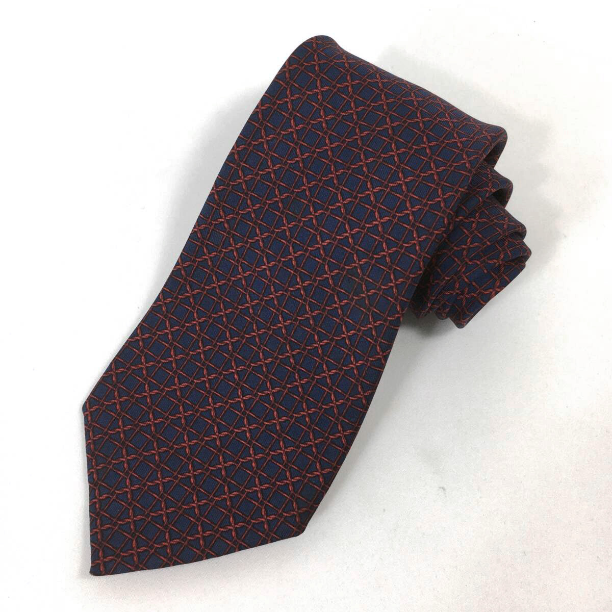 - エルメス ネクタイ シルク ネイビー×エンジ 編み模様 838 EA プリント フランス製 HERMES 難あり