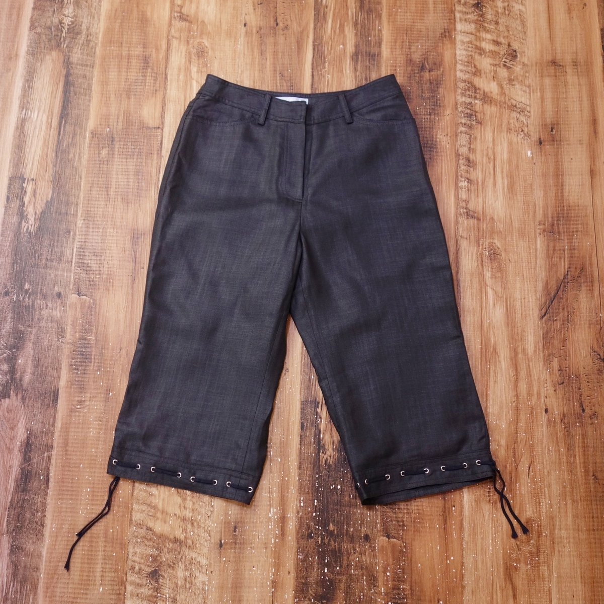 - 美品 エグランティーヌ レースアップ クロップドパンツ レディース ハーフパンツ 日本製 9 Mサイズ チャコールグレー QK3