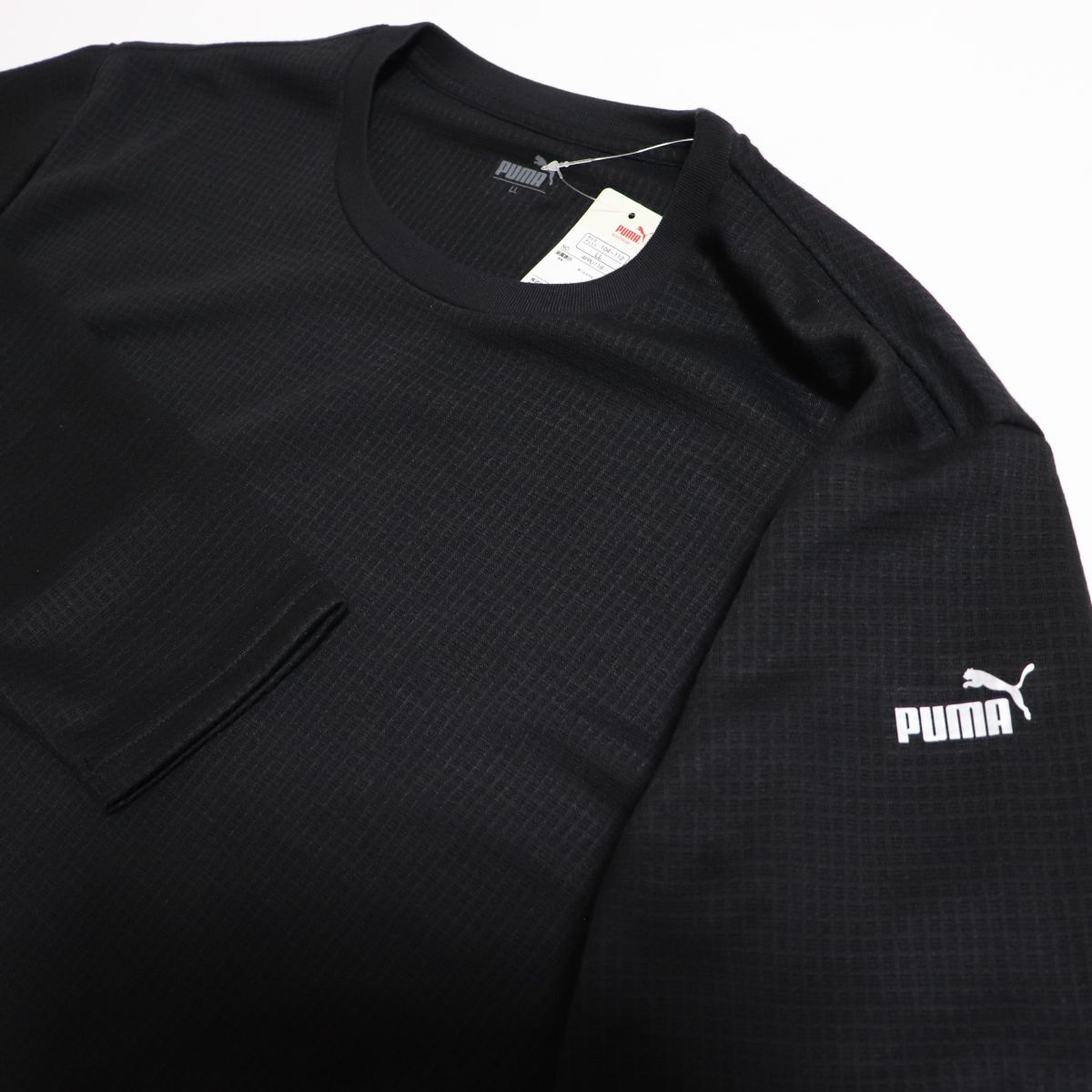 - ★プーマ PUMA 新品 メンズ 快適 シンプル ロゴ入り トレーニング 長袖 ワッフル シャツ ロンT 黒 XLサイズ[4FPU116-BLK-LL]三 参★QWER★