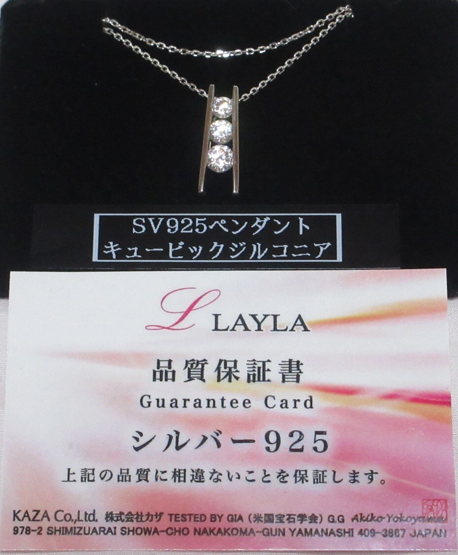 > 【未使用/保管品】■LAYRA レイラ 3連ペンダント/キュービックジルコニア/シルバー925/ネックレスチェーン 38㎝
