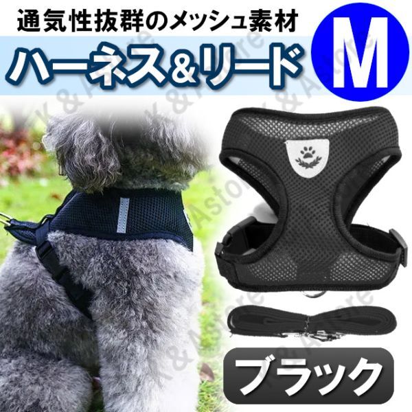 - ハーネス リード メッシュ ペット 犬用 猫用 散歩 抜けない 脱げない 首輪 胴輪 超小型犬用 小型犬用 Mサイズ 黒 ブラック