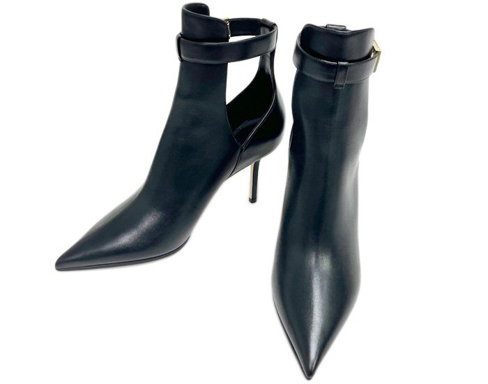 > 未使用 JIMMY CHOO ジミーチュウ NELL AB 85 カーフレザー アンクルブーツ #37 約24cm ヒール85mm ブラック系 ゴールド金具 付属品有