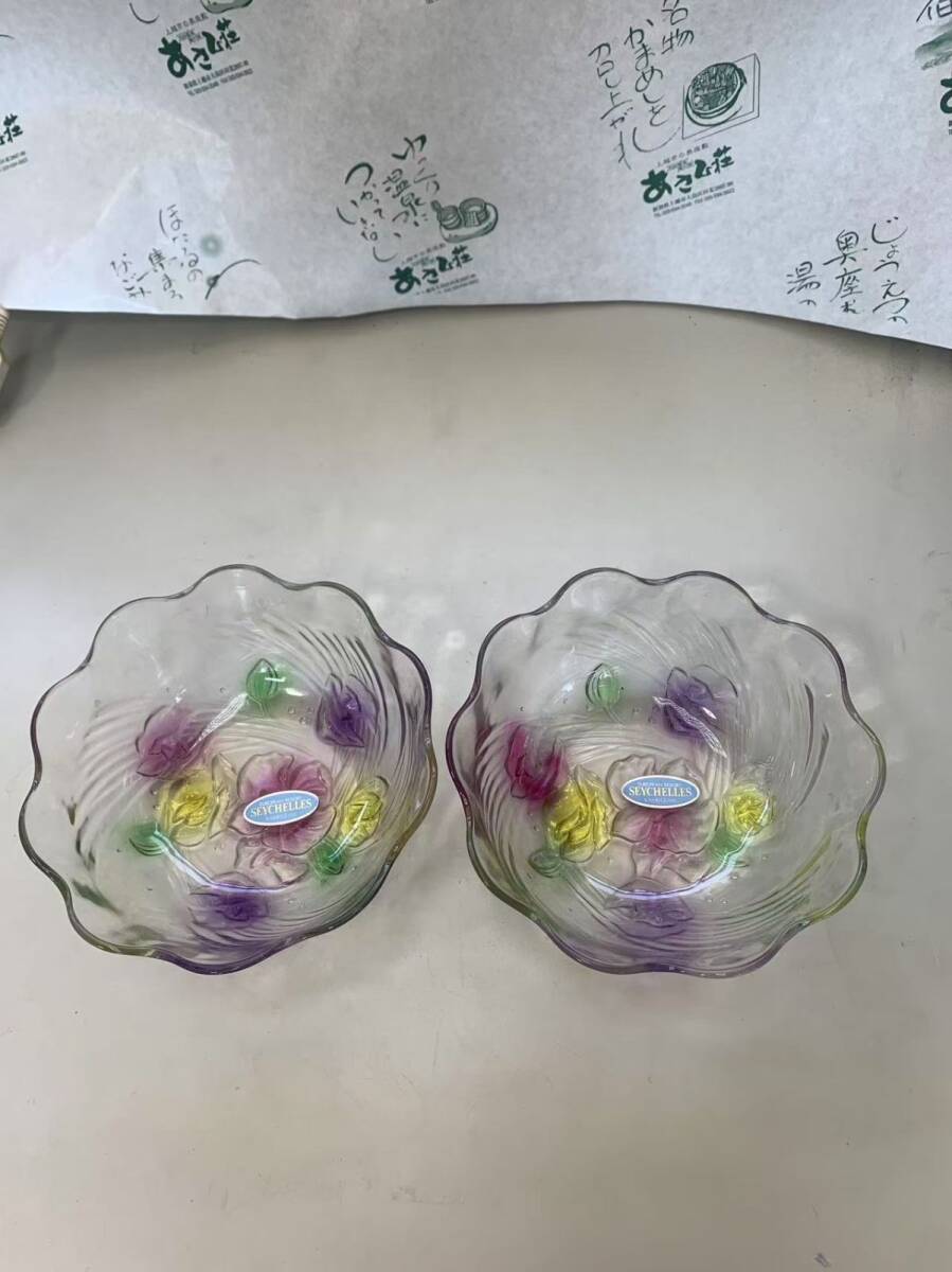 - S1-7-4→ガラス 硝子 昭和レトロなカメイグラスのガラスの器 フルーツボウル バスケット 盛り皿 時代物 旧家