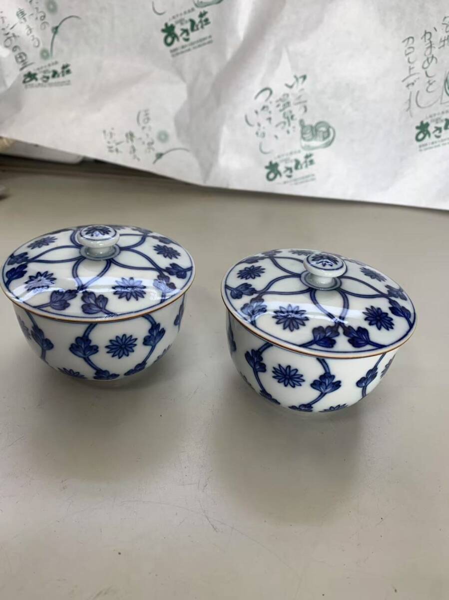 - S1-8-4→橘吉 蓋付き 湯呑み 2個セット 中古 陶磁器 茶道具
