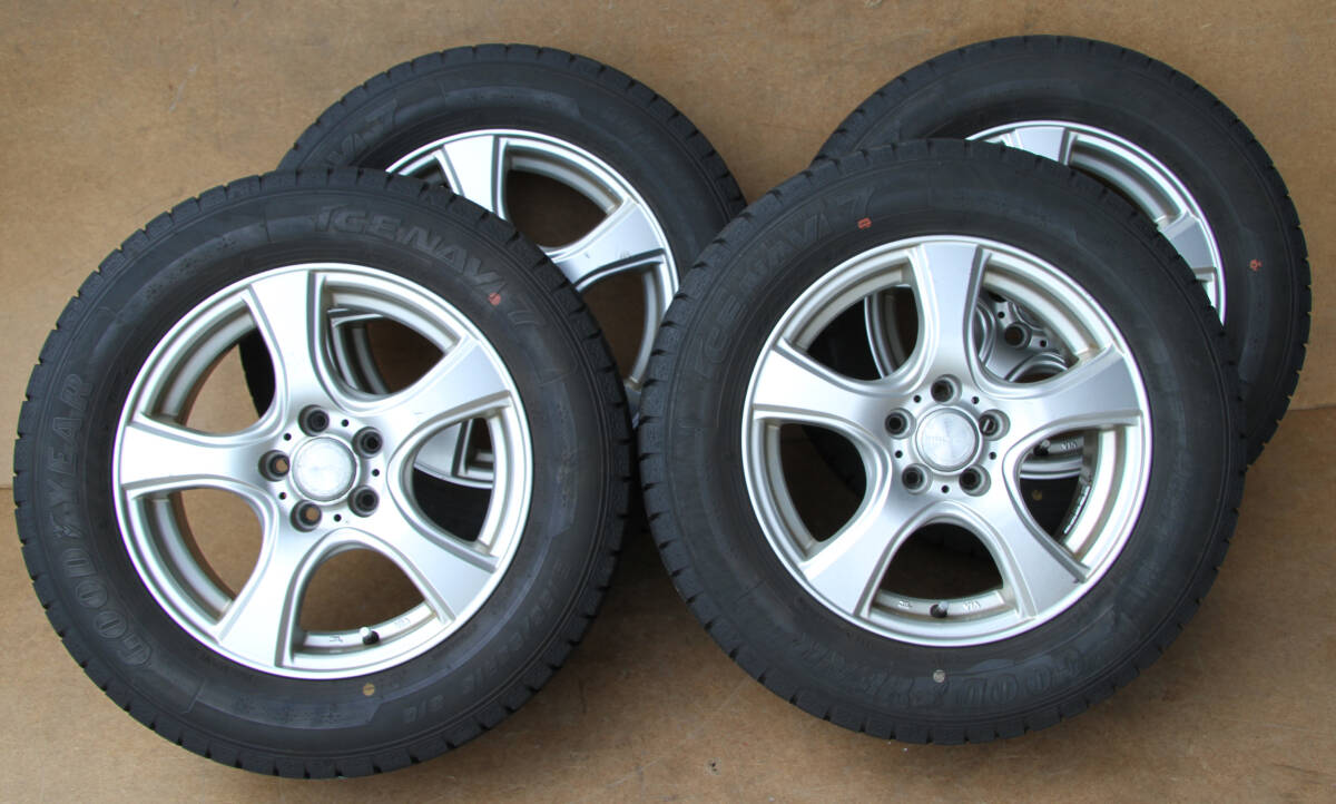 - 15インチアルミホイール+GYスタッドレスタイヤ 4本セット☆195/65R15 2022年製 PCD100 5孔 バリ山 ICENAVI7