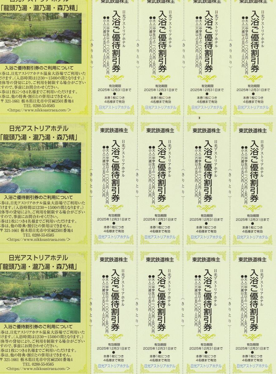 - 東武鉄道株主★日光アストリアホテル★入浴ご優待割引券★3シート(12枚セット)★即決