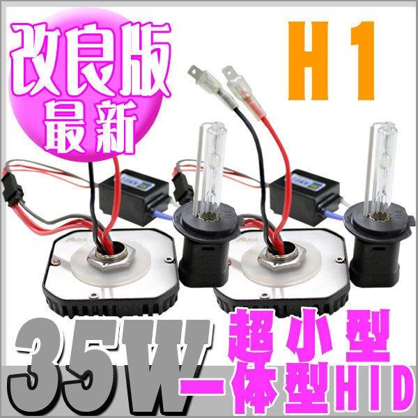 > 最新版!一体型ミニHIDキット 35W H1 6000K 超小型 省スペース ヘッドライト/フォグランプに 左右セット 12V用