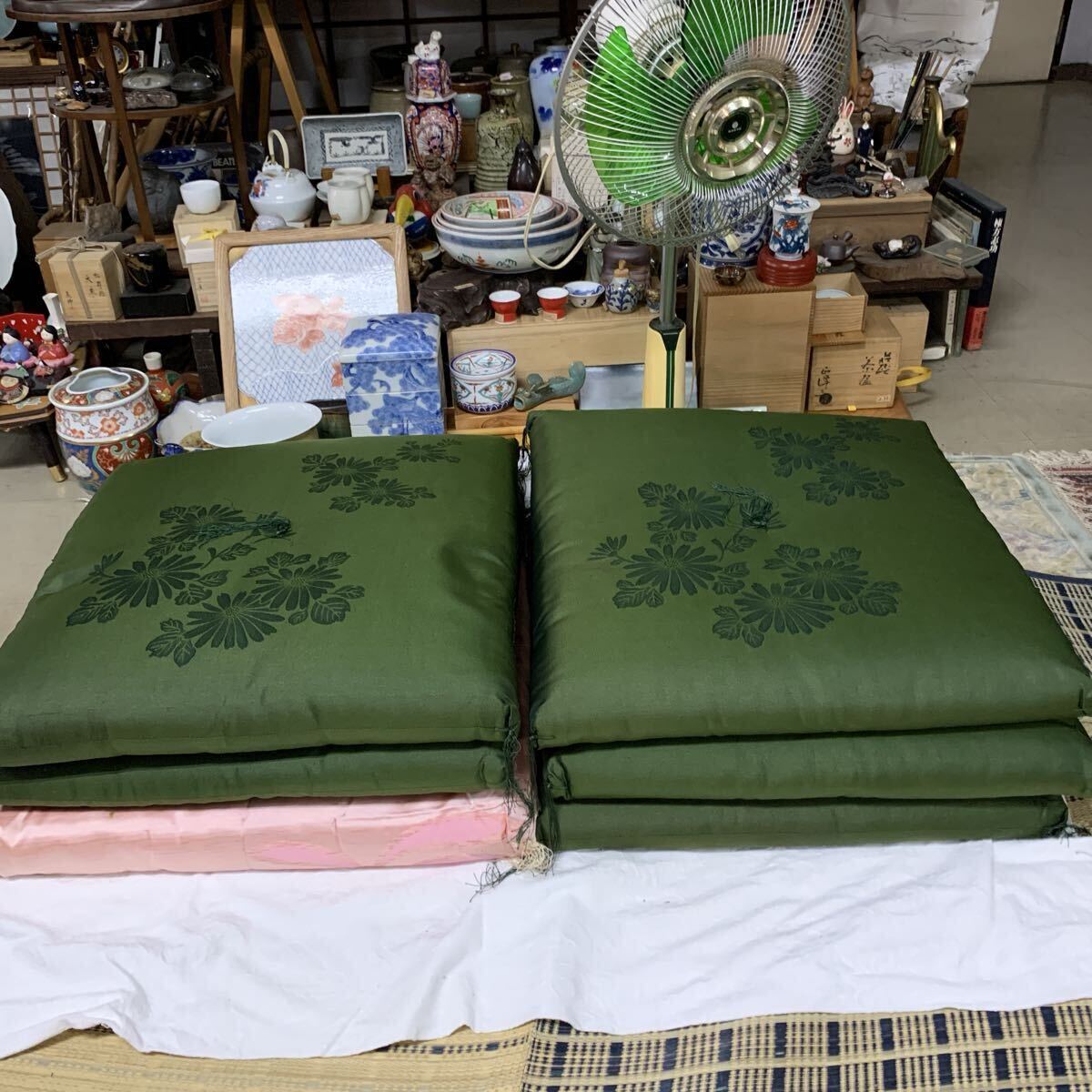 - 座布団 本綿 5枚組 緑 花柄 ピンク 1枚 和風 家庭用品