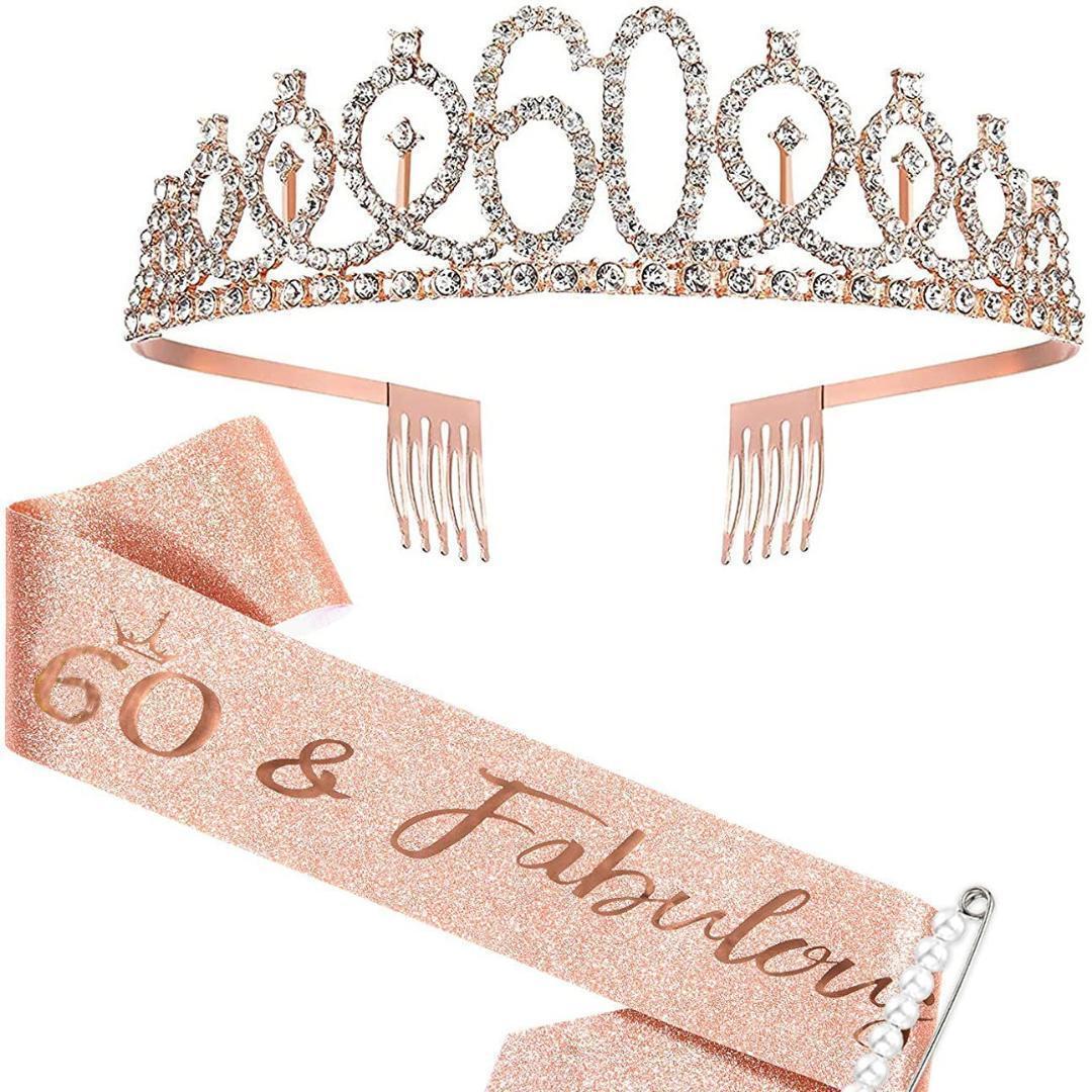 > 【新品未使用】還暦 祝い 赤い ちゃんちゃんこ 60 女性 誕生日 ティアラ たすき タスキ パーティーグッズ ピンク パール