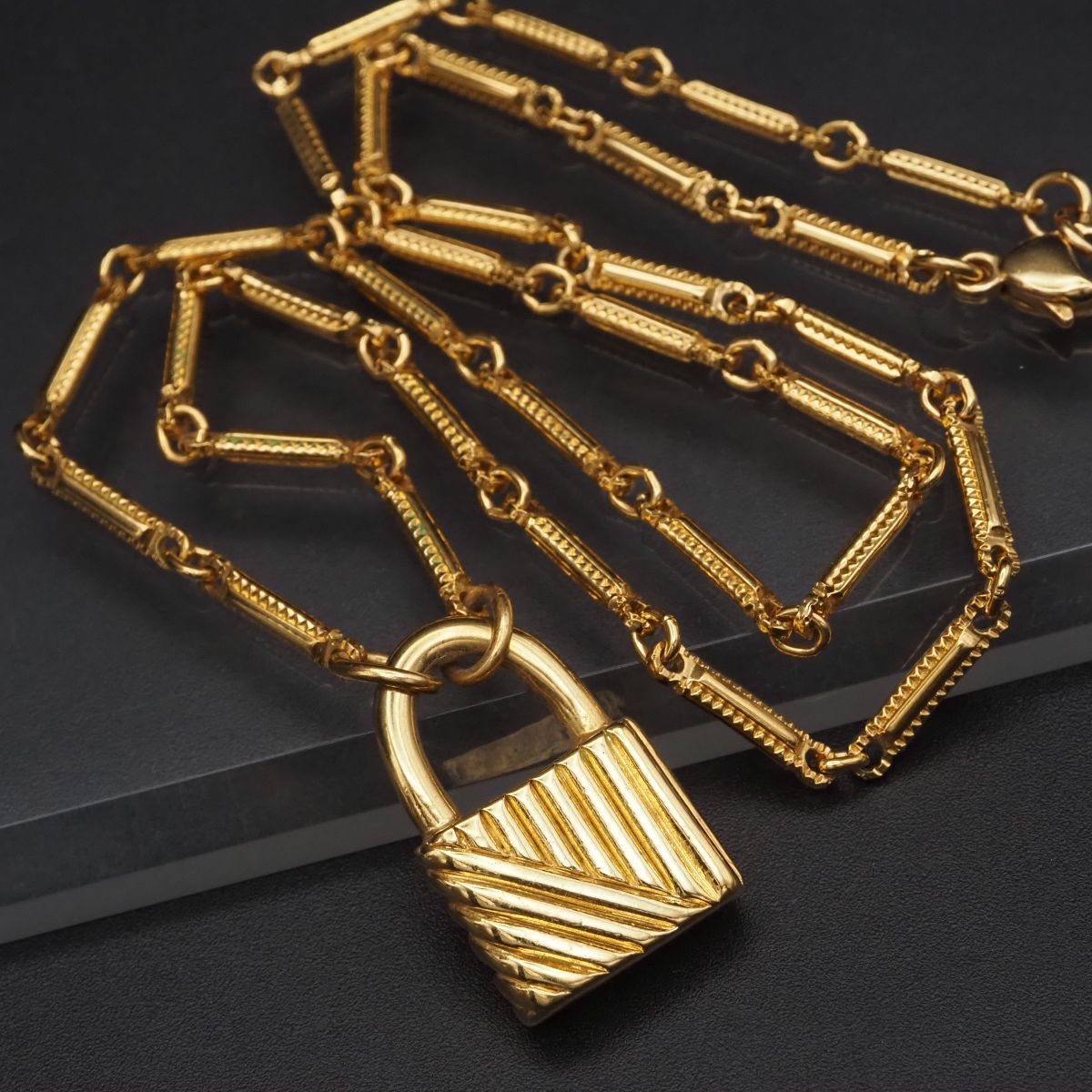 - F798 MONET モネ ペンダント ネックレス 南京錠 鍵 ゴールド デザイン