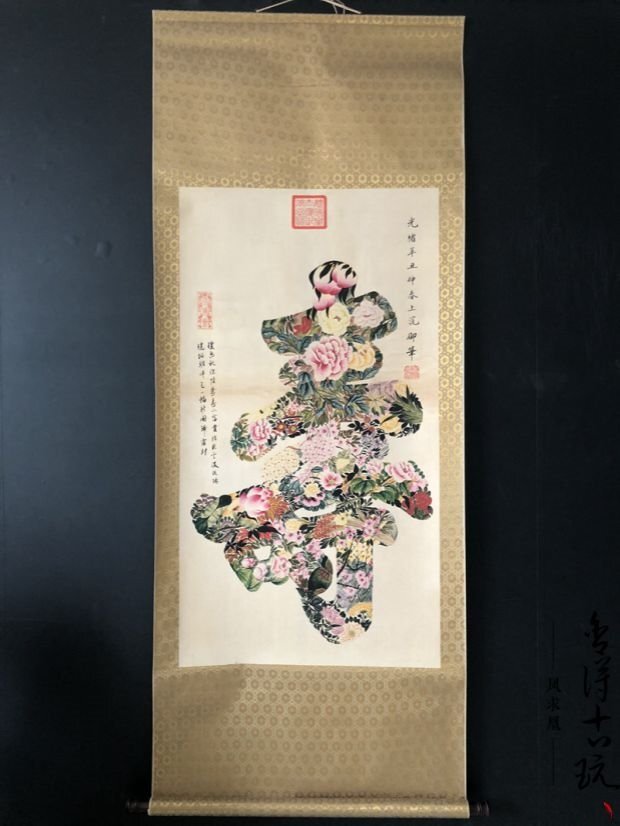 - 店長勧め 極美品 ! 中国美術 掛軸 花中寿 花絵柄 鑑賞 巻物 中堂画 装飾 立軸 zh661