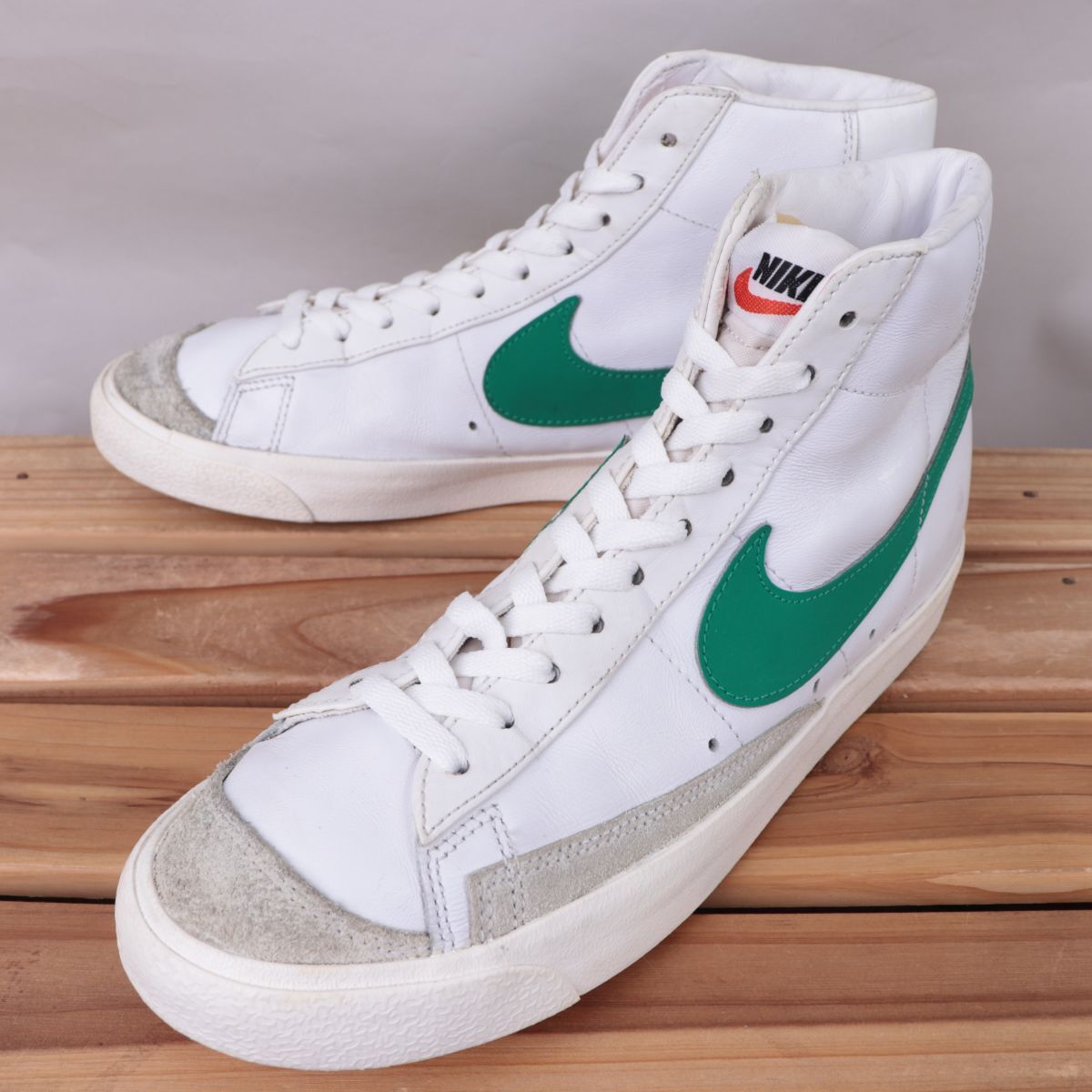 > z2406 ナイキ ブレーザー ミッド US8 26.0cm/白 ホワイト 緑 グリーン グレー NIKE BLAZER MID ブレザー メンズ スニーカー 中古