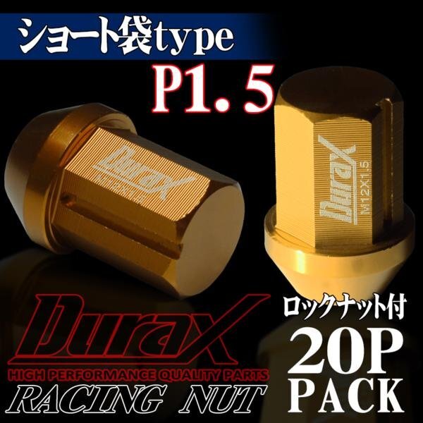 > DURAX製 ホイールナット ロックナット ショート袋ナット 34mm レーシングナット 20個 金 ゴールド P1.5 短袋型 トヨタ ホンダ 150KS