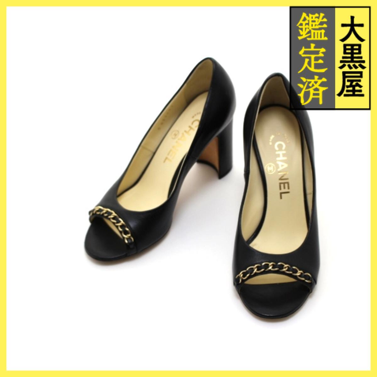 > CHANEL シャネル 靴 チェーン オープントゥパンプス レディース35C(約22.5cm) ブラック 革 G31531