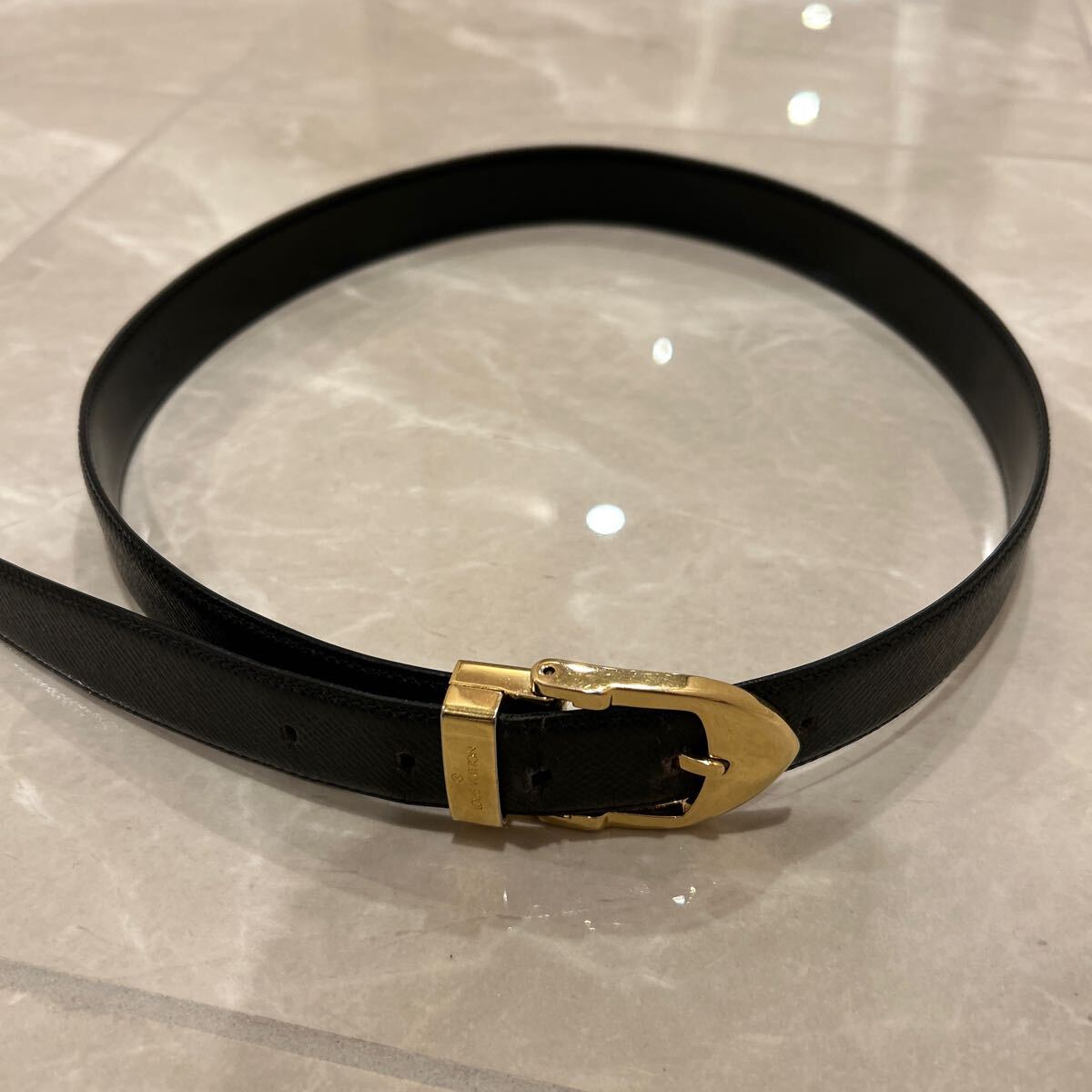- ルイ・ヴィトン LOUIS VUITTON レザー ベルト 本革 黒 型押し ブラック