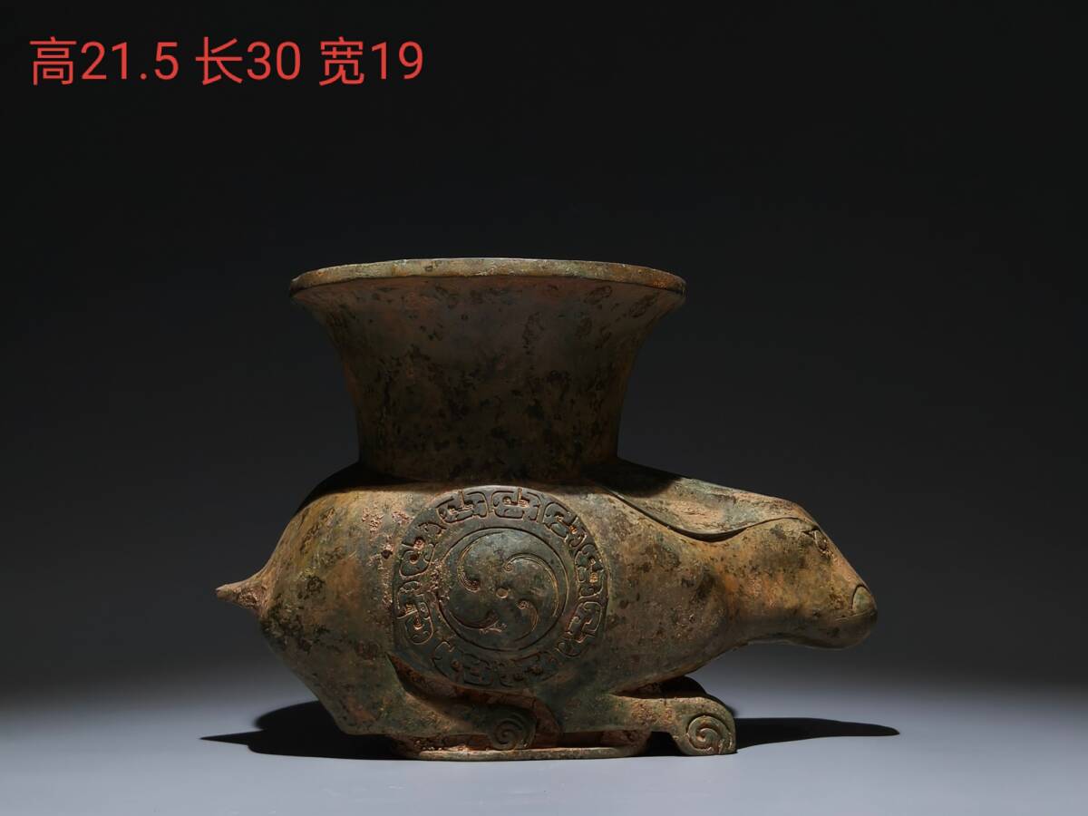 - 【超珍館蔵】西周 青銅製 火紋 兔尊 青銅器 置物 賞物 古賞物 古董品 古美術品 時代物 旧家蔵出 稀少珍蔵品