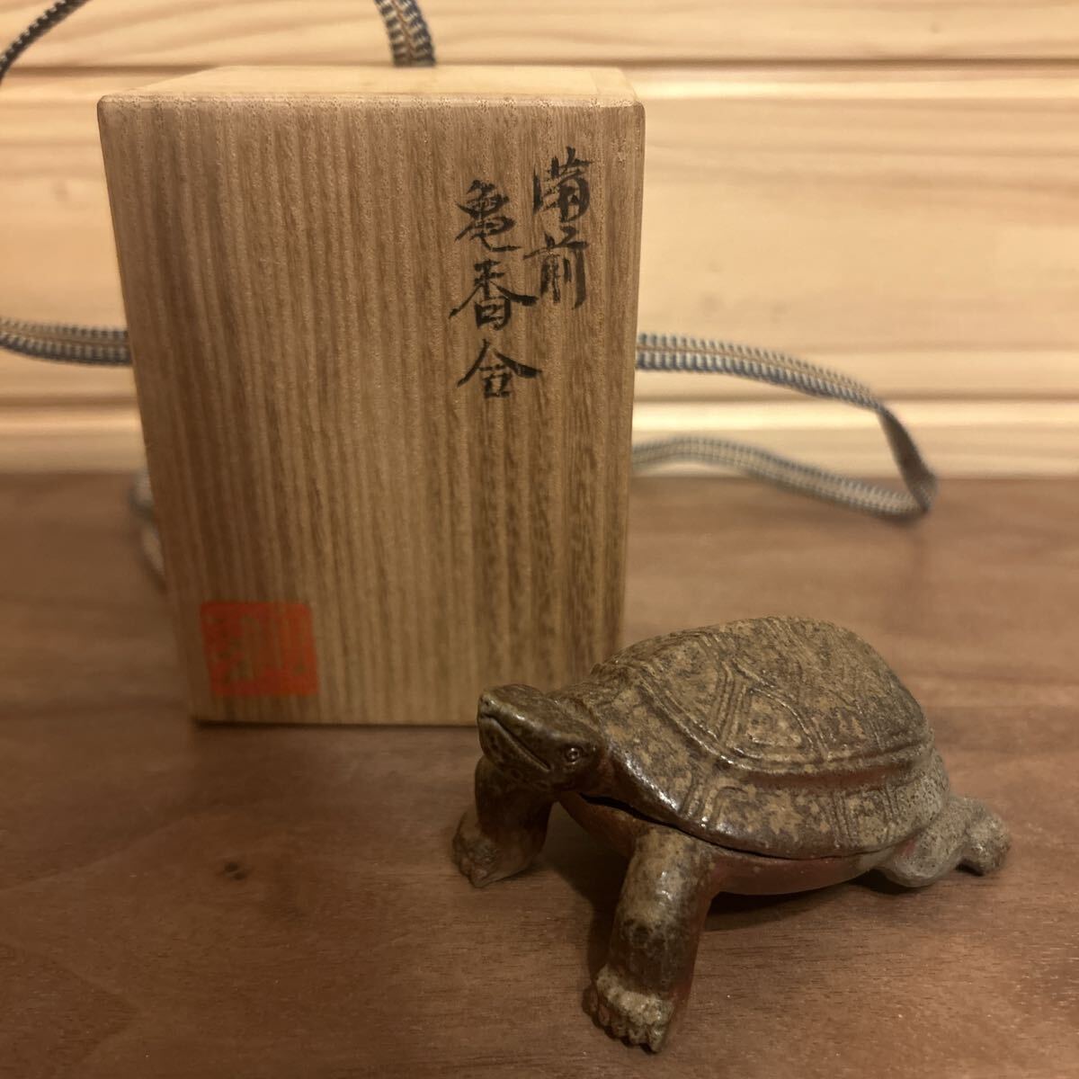 - 平川正二 亀の香合 備前焼 箱汚れあり 在銘
