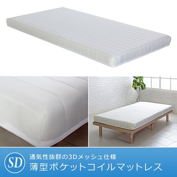 - ポケットコイルマットレス セミダブル メッシュ 薄型 薄い マットレス単品 白 寝やすい 体圧 分散 快眠 圧縮梱包 コンパクト SD サイズ