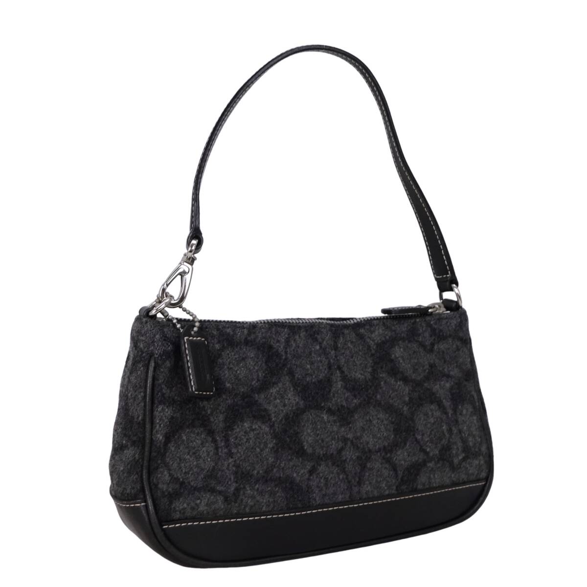 > 本物 良品■コーチ■シグネチャー デミポーチ ウール ブラック グレー アクセサリーポーチ ミニ ハンドバッグ /873451