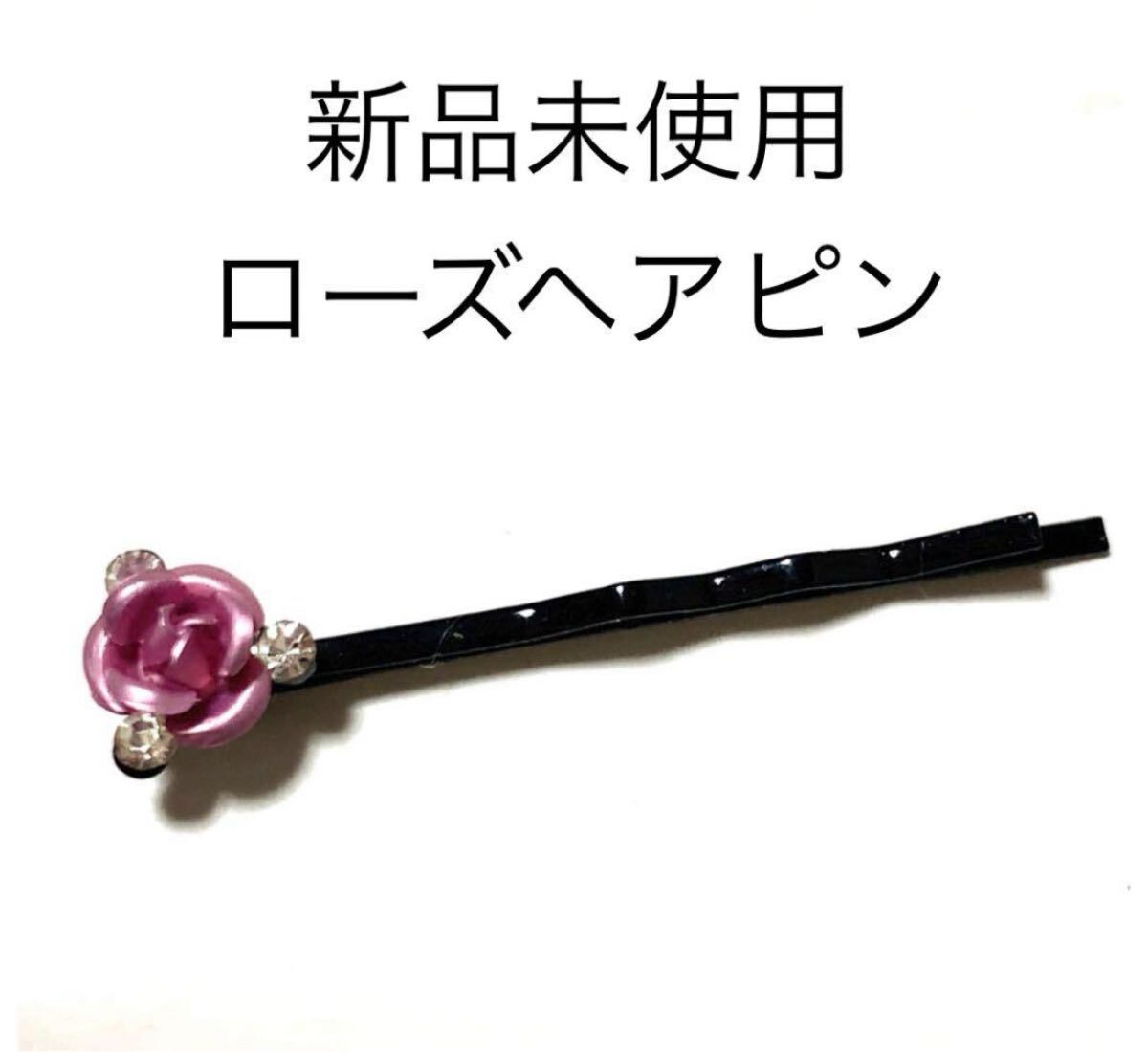 - 新品未使用 ミニローズヘアピン メタリックピンク アメリカピン バラ 薔薇 アメピン ヘアアクセサリー ラインストーン