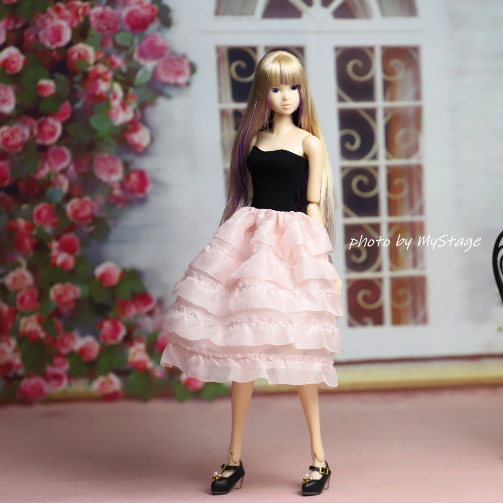 > 人形服msdr-25-4957黒×ピンクチュールワンピース(momoko、ジェニー、SAJボディ、OBITSUボディ)
