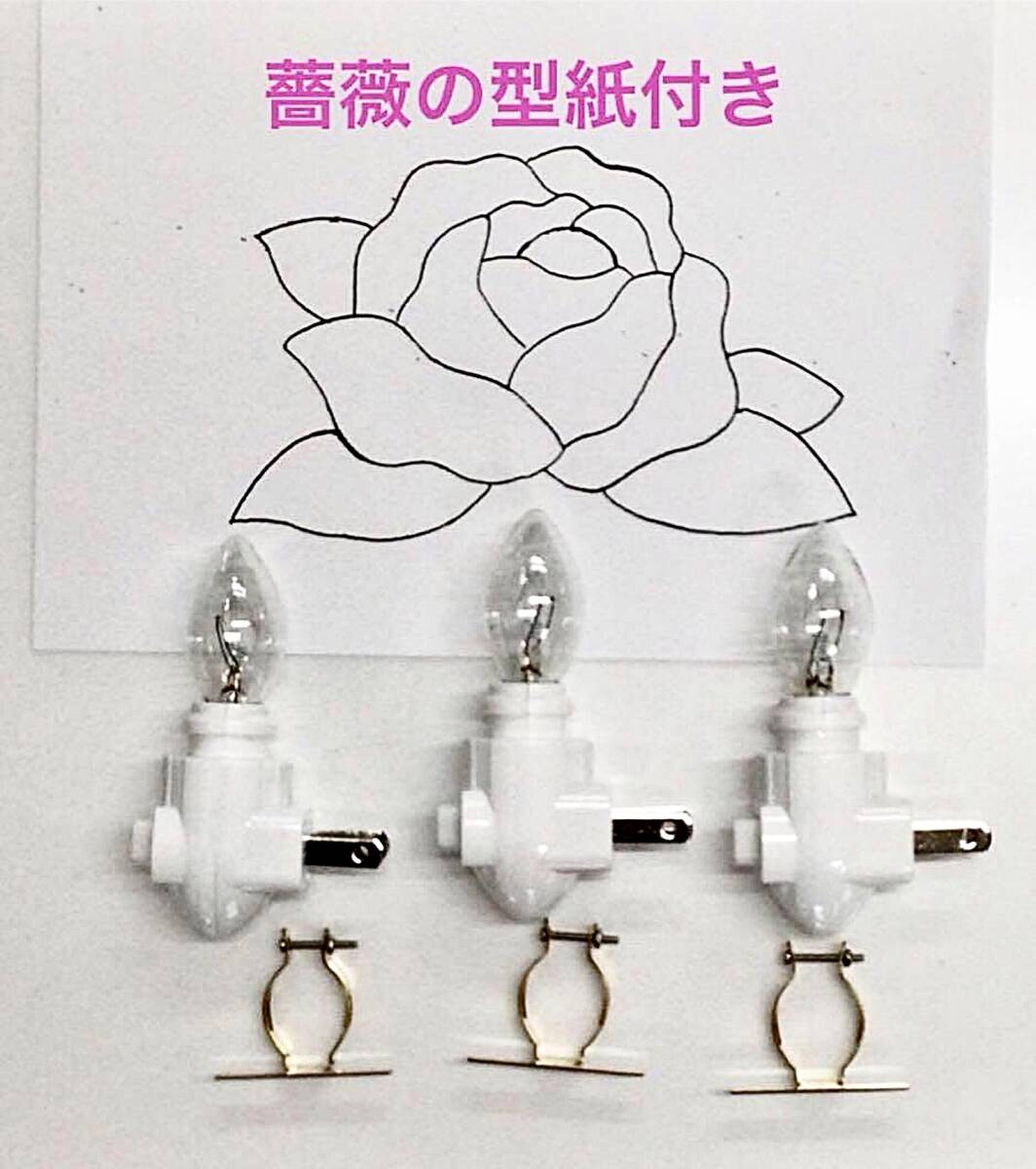 - ステンドグラス材料 お休みランプソケット3個セット 薔薇の型紙付き 新品未使用