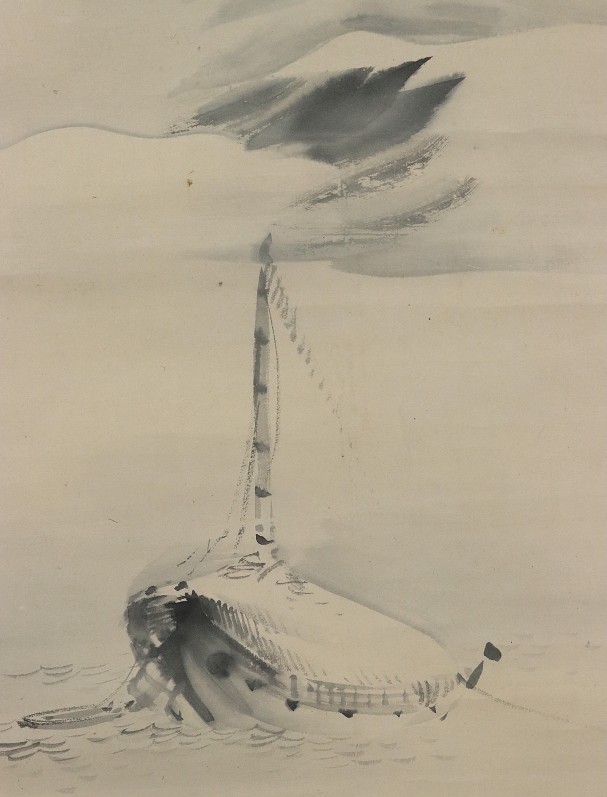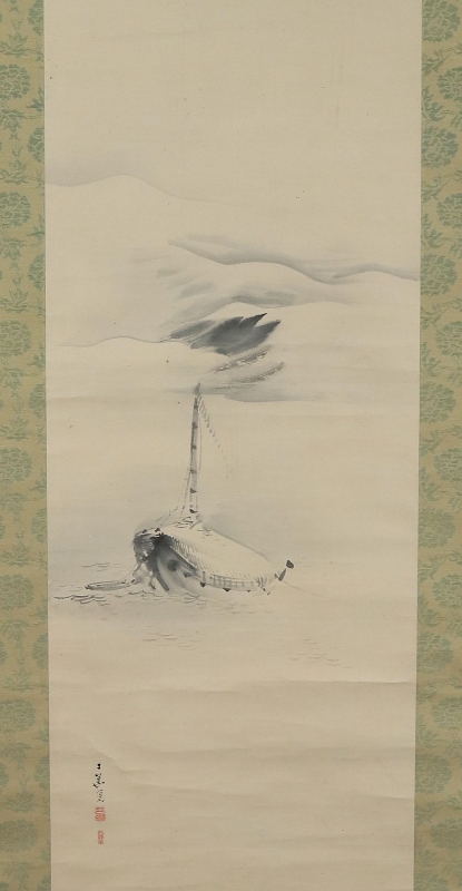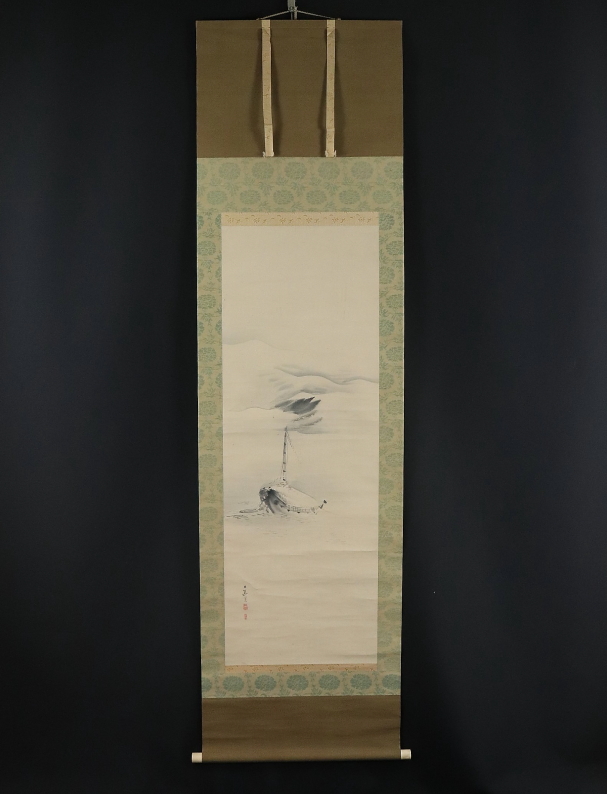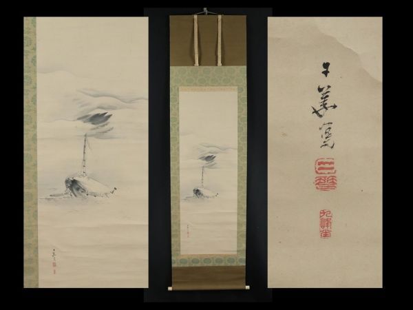 - 11010■【真作】田中日華 雪舟と遠山図 肉筆 四条派 岡本豊彦高弟 掛軸