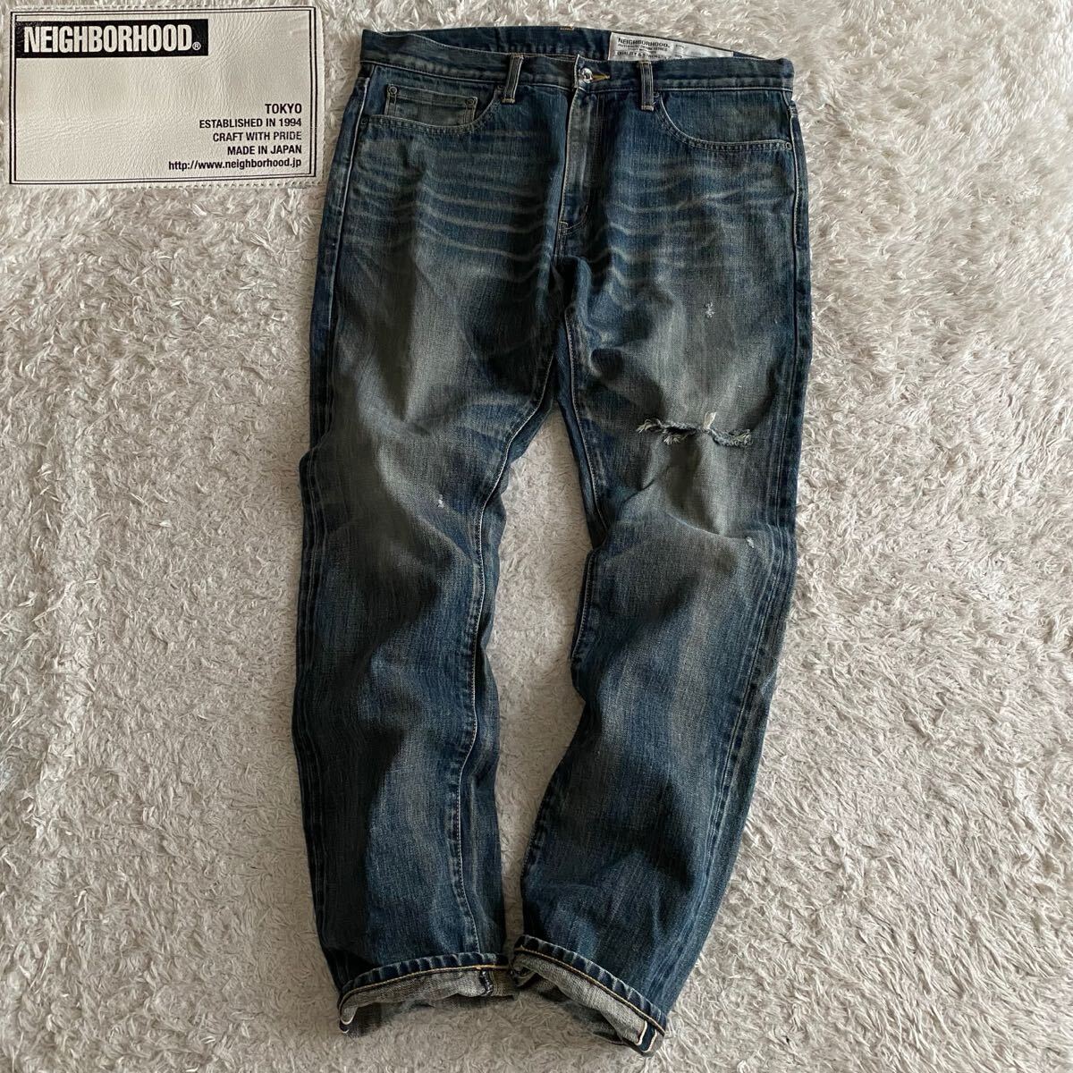 - L NEIGHBORHOOD DP-NARROW 182DCNH-PTM12 ネイバーフッド 赤耳セルビッジデニム セルビッチ ダメージ加工 USED加工 日本製 鬼ヒゲ ハチノス