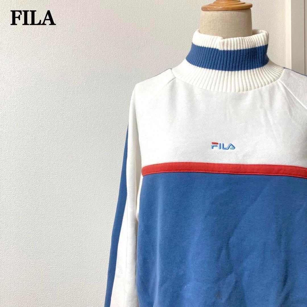 - 希少 フィラFILA 長袖トレーナー スウェット ロゴ刺繍 裏起毛 トリコカラー 男女兼用 M