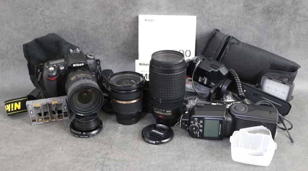 - 1円~ 【デジタル一眼レフカメラ】 ニコン NIKON D90 MB-D80 レンズ3本 その他付属品多数