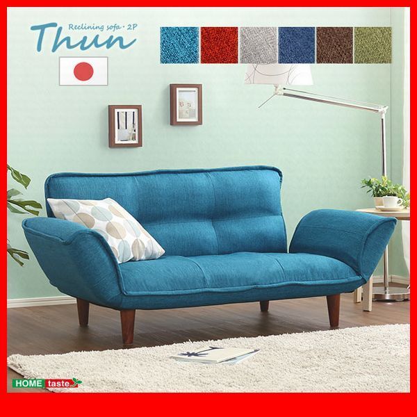 > ソファ★2人掛け リクライニング カウチソファ/ローソファ 座椅子にも/布地 ポケットコイル/日本製 完成品/茶 緑 赤 濃 紺青 グレー/zz