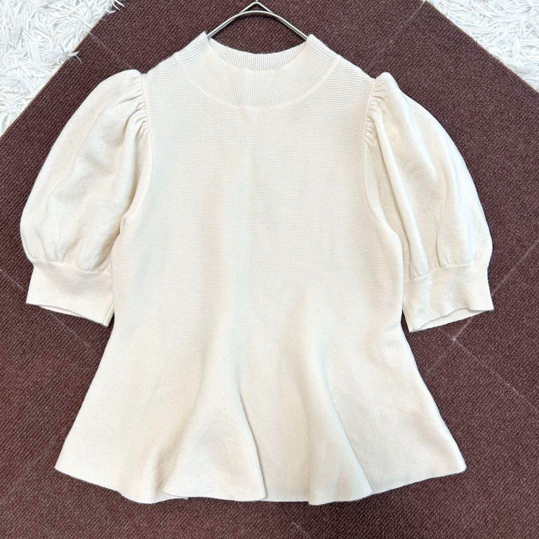 > カシミヤ100% CELFORD セルフォード ペプラムニット パフスリーブ トップス アイボリー ホワイト 白 フェミニン